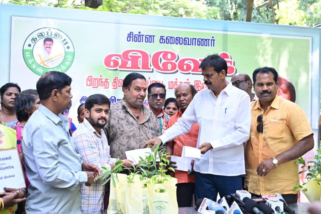நடிகர் விவேக்கின் சமூக சேவைகளில் மரக்கன்று நடுவது முதன்மையானதாக இருந்தது. அதை நினைவுகூறும் விதமாக இன்று நடந்த நிகழ்வில் பலருக்கும் மரக்கன்றுகள் வழங்கப்பட்டன.